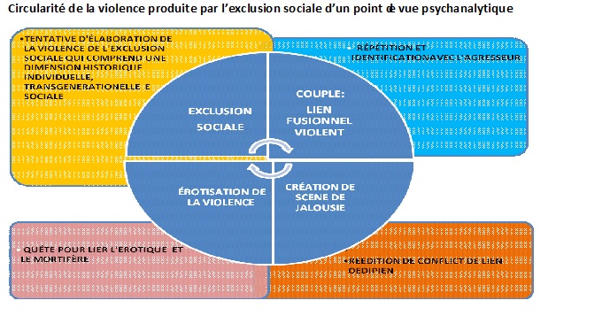 Comme psychanalystes nous pouvons contribuer avec des apports spécifiques à la compréhension des dimensions sociales et symboliques de l'exclusion, dans le cadre d´organisations, d'équipes et d'institutions autant avec notre approche thérapeutique individuelle ou de groupe qu'à travers « le soin du soignant » en favorisant dans tous les cas la construction permanente de la subjectivité et des liens sociaux.