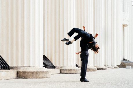 Avec Fragile, Astrid Mayer & Raphaël Billet souhaitent remettre la fragilité au centre de nos préoccupations, et réaffirmer l’importance du groupe, de la relation, du partage, de la sensibilité et de la communication. Iels ont à coeur de parler des fragilités émotionnelles et relationnelles dans un rapport intime, avec le plus petit groupe qui soit : le duo. Un duo qui évolue dans un environnement instable, où accidents et ruptures vont dévoiler les failles des deux interprètes, faire apparaître leurs doutes et modifier leur relation